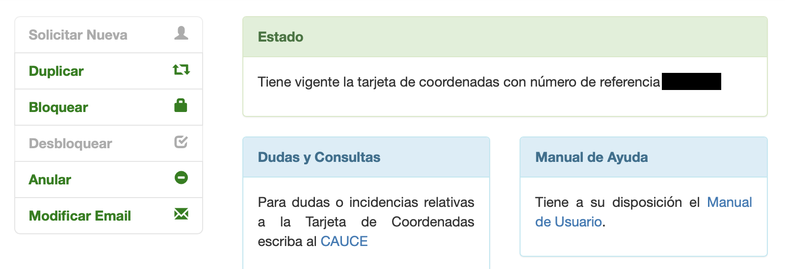 4. Return to the first page to verify that you successfully requested your Tarjeta de Coordenadas.
